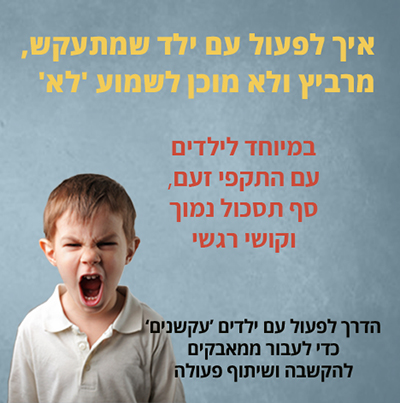 - ללמד אותה לדבר את הרגשות והצרכים שלה – במקום לצעוק, לפגוע בעצמה ובאחרים? במקום להתעקש ולכעוס? במקום להיות בהתקף זעם מבלי יכולת לצאת ממנו?